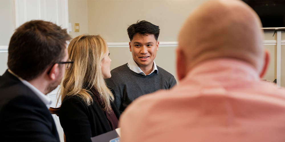 A group of people having a meeting in the Bristol Digby Office